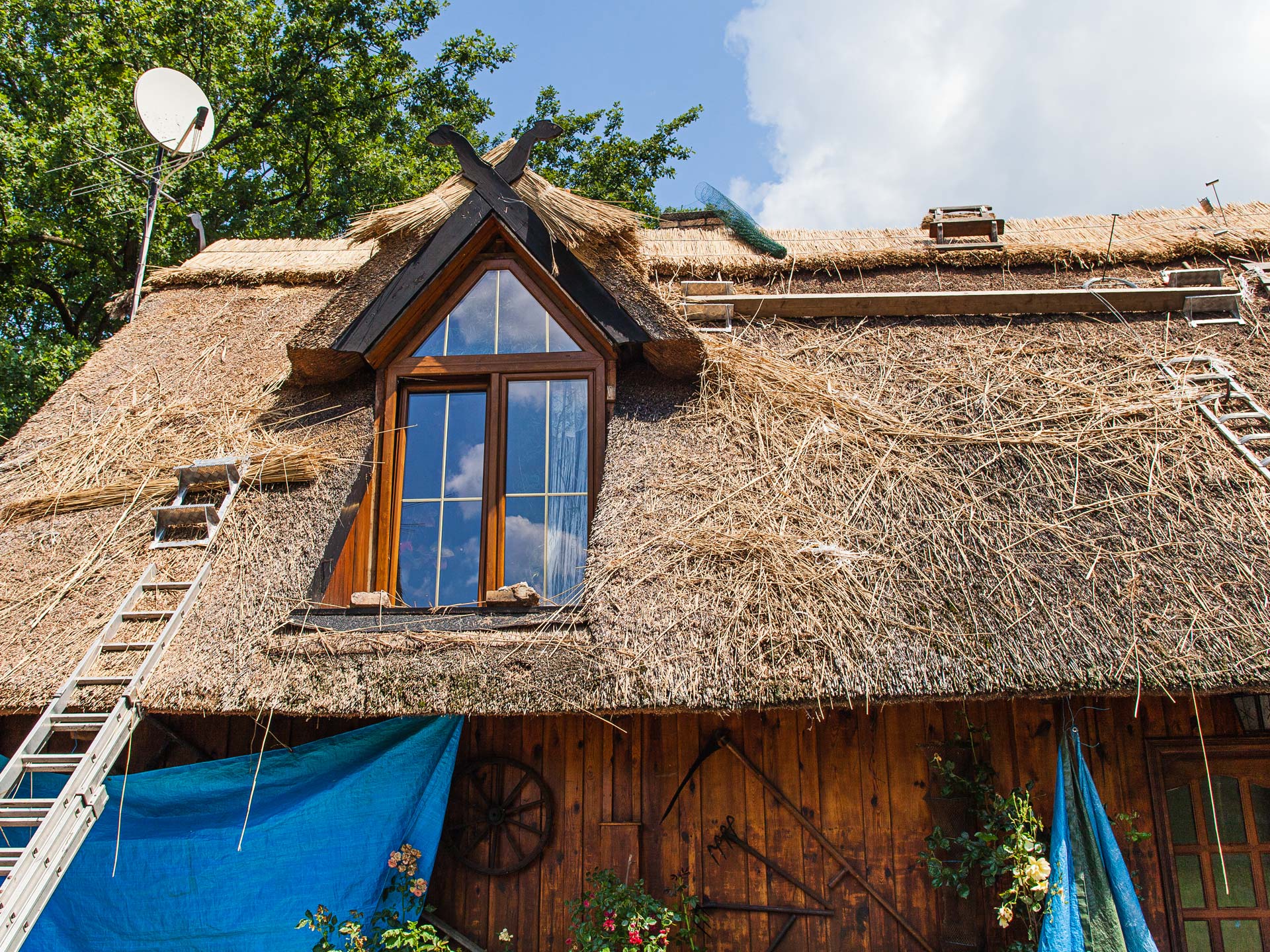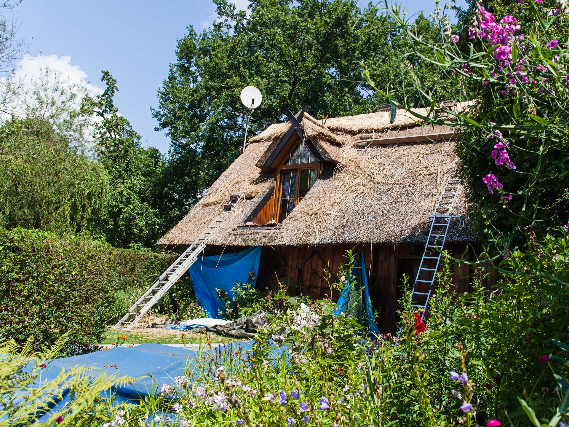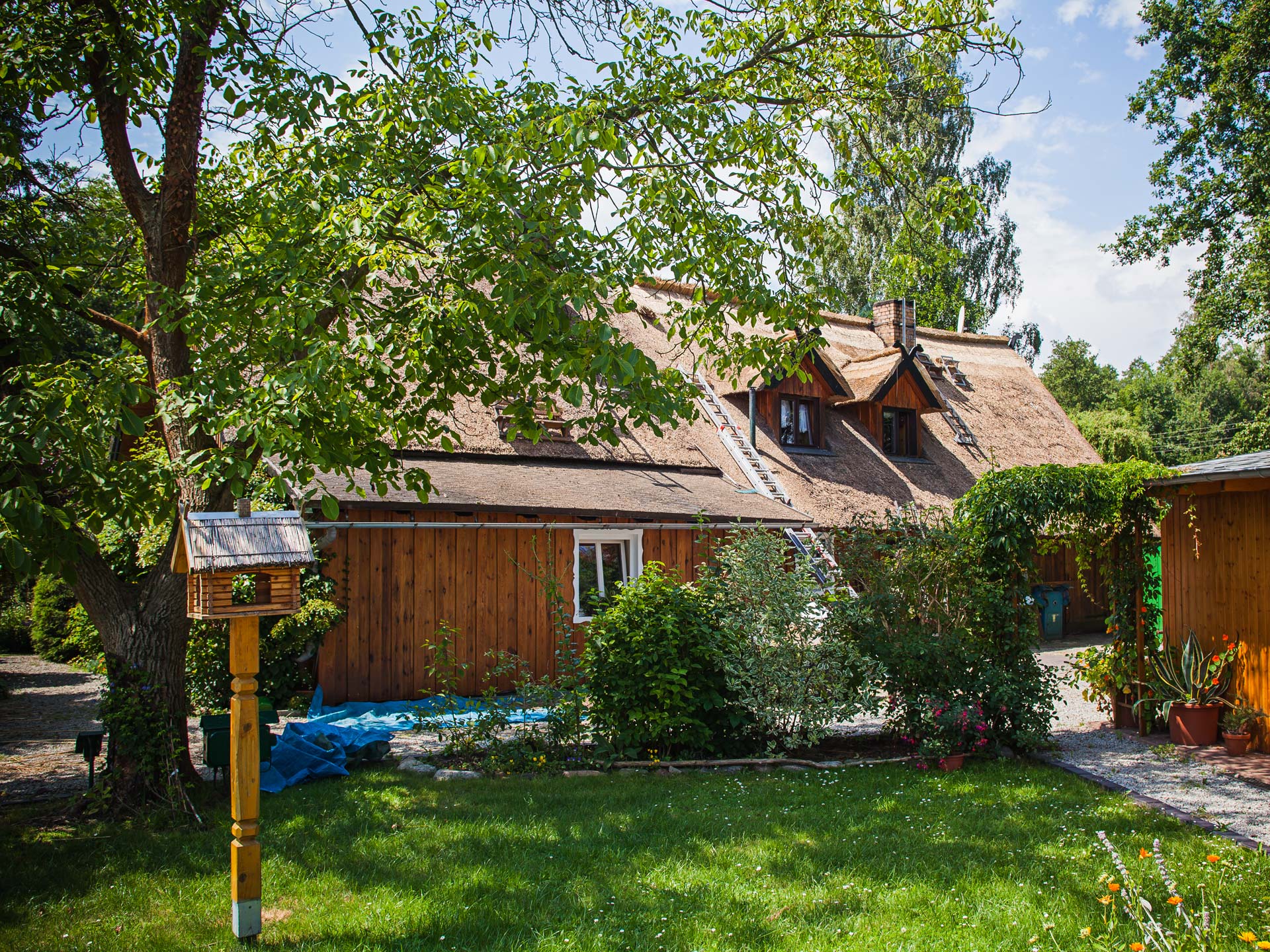 Unser letzter Einsatz führte uns ins Spreewalddorf Leipe. Dort wurden wir vom Bauherren gerufen, um das Dach des Wohnhauses zu reparieren bzw. den First neu einzudecken.